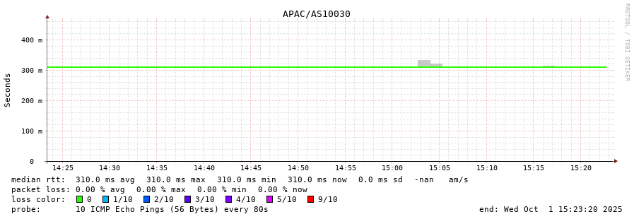 43. Median RTT 0.309 seconds