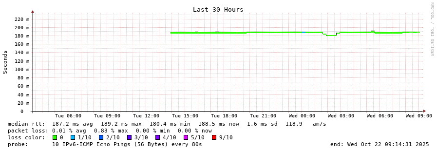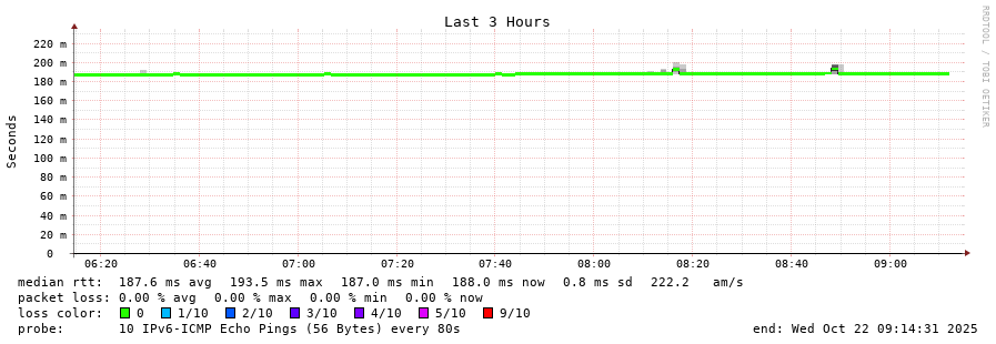 traceroute to 2a0c:9a40:8610:e3f::1 (2a0c:9a40:8610:e3f::1), 30 hops max, 80 byte packets - Generated at 2025-10-22 07:15:01