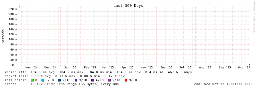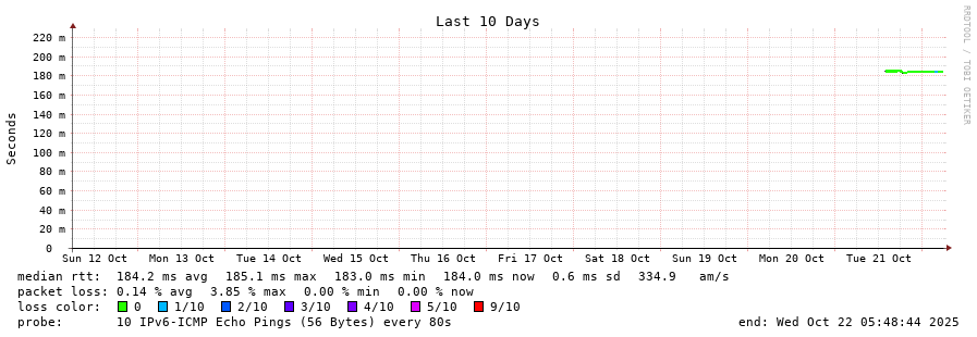 19 > 2001:67c:10:1102::11 (2001:67c:10:1102::11) [AS60149] 185.045ms 184.643ms 184.618ms