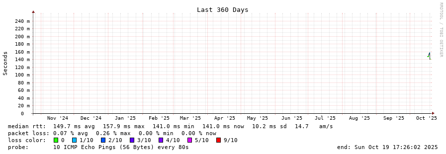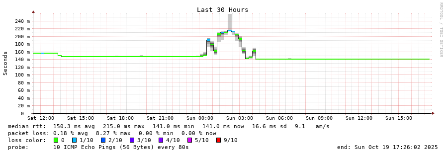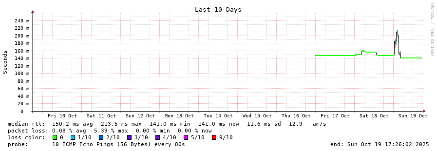 traceroute to 190.14.227.10 (190.14.227.10), 30 hops max, 60 byte packets - Generated at 2025-10-19 07:45:01