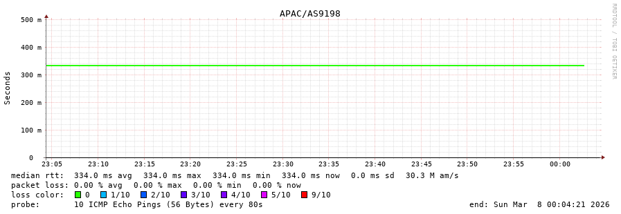 24. Median RTT 0.334 seconds